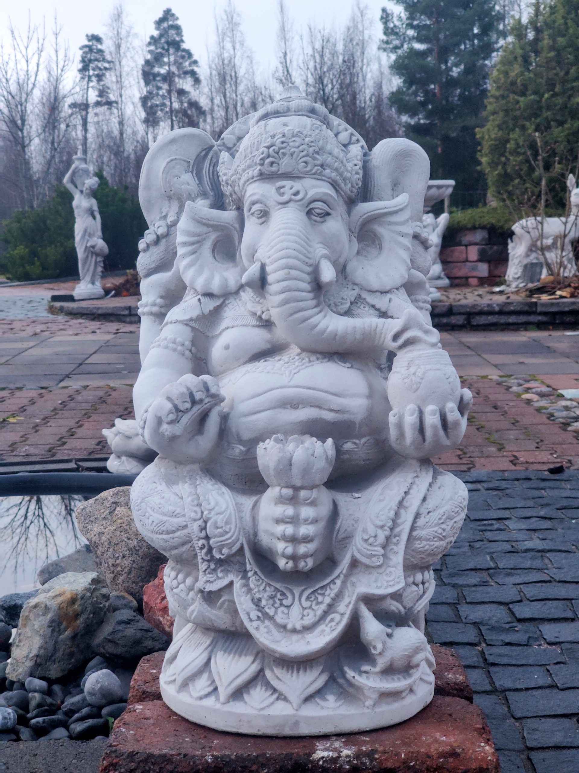 Euroopan suurimman betonipatsaiden valmistajan valmistama Ganesha patsas. Materiaali kestää Suomen vaihtelevat säät.