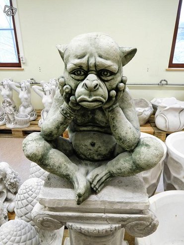 Gargoyle patsas on Euroopan suurimman betonipatsaita valmistavan tehtaan tuote. Betonipatsas kestää Suomen