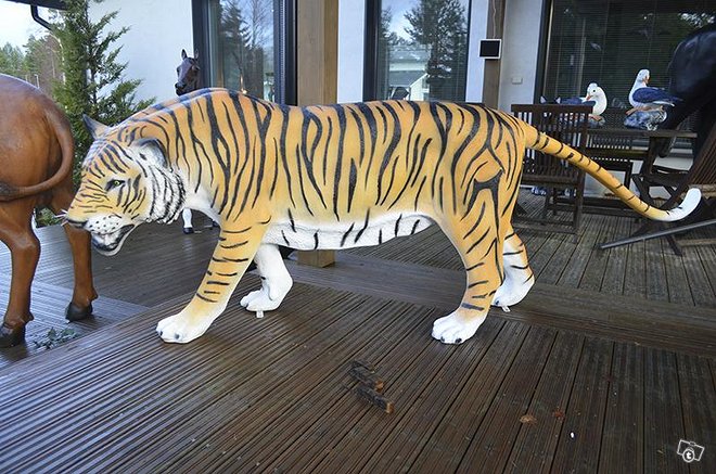 Tiikeripatsas on valmistettu korkealaatuisesta laminaatti-hartsi-lasikuitumassasta. Materiaali on säänkestävä.