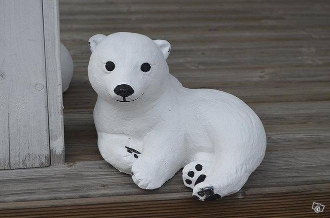 Veikeä jääkarhunpentupatsas on Euroopan suurimman betonipatsaiden valmistajan tuote. Suomen vaihtelevan