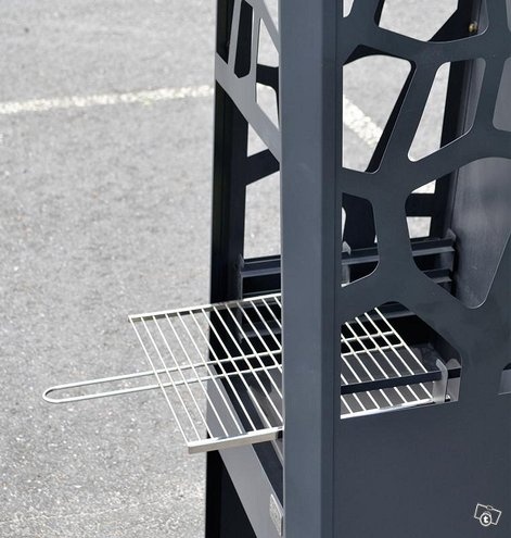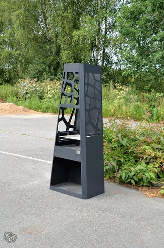 Aito Nomilo, koristeellinen pihatakka on valmistettu kestävästä teräksestä ja jauhemaalattu. Takka kestää 650 asteen kuumuuden. Erikoinen takka puutarhaan tai terassille, jota voi käyttää myös grillinä.
