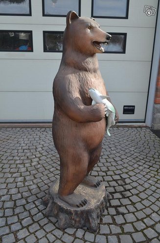 Suuri kokoinen karhupatsas. Valmistettu todella laadukkaasti ja viimeistelty hienosti. Valmistusmateriaali korkealaatuinen