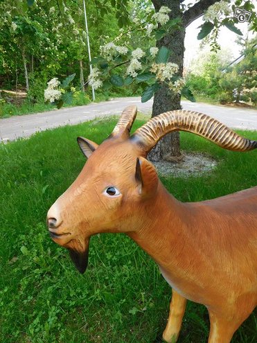 Vuohi on valmistettu korkealaatuisesta hartsi-lasikuitumassasta. Käsin maalattu ja viimeistelty. Materiaali on säänkestävä.